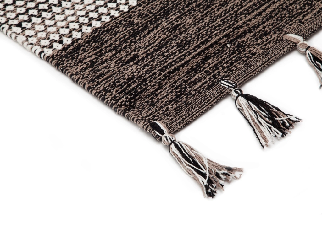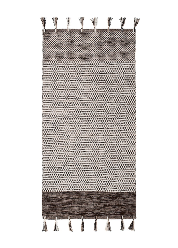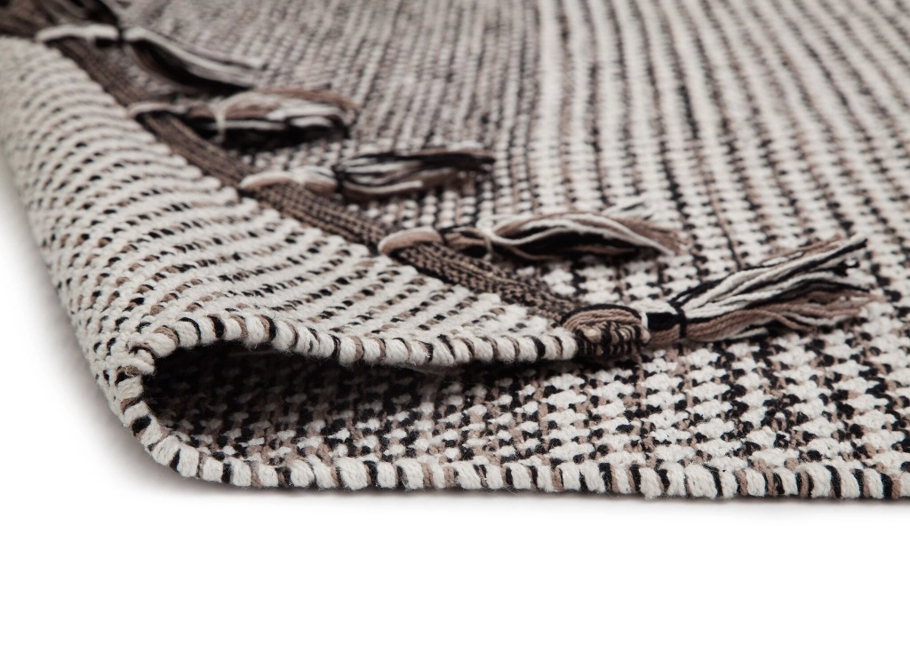 Vinga Garnmatta är vävd i 100% bomull och har ett mönster i vita, grå och svarta toner. Mattan har dekorativa fransar på kortsidorna och det är möjligt att vända på mattan och använda båda sidor. Vinga är garnvävd vilket innebär att garnet färgas innan vävning. Eftersom Vinga handvävs så är alla mattor unika, vilket innebär att mönster och färg variera något mellan varje exemplar.
