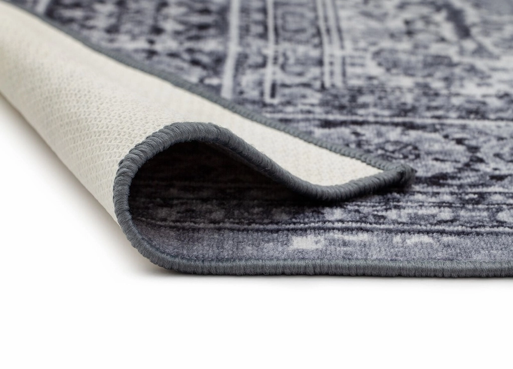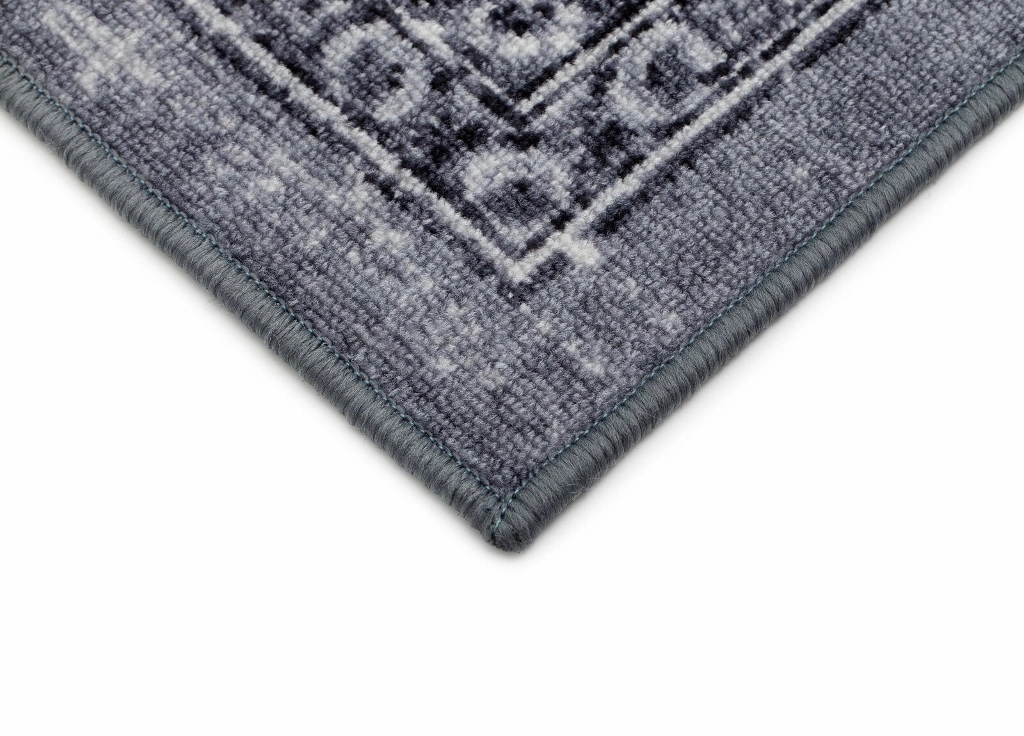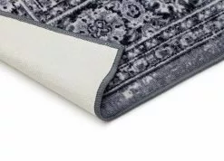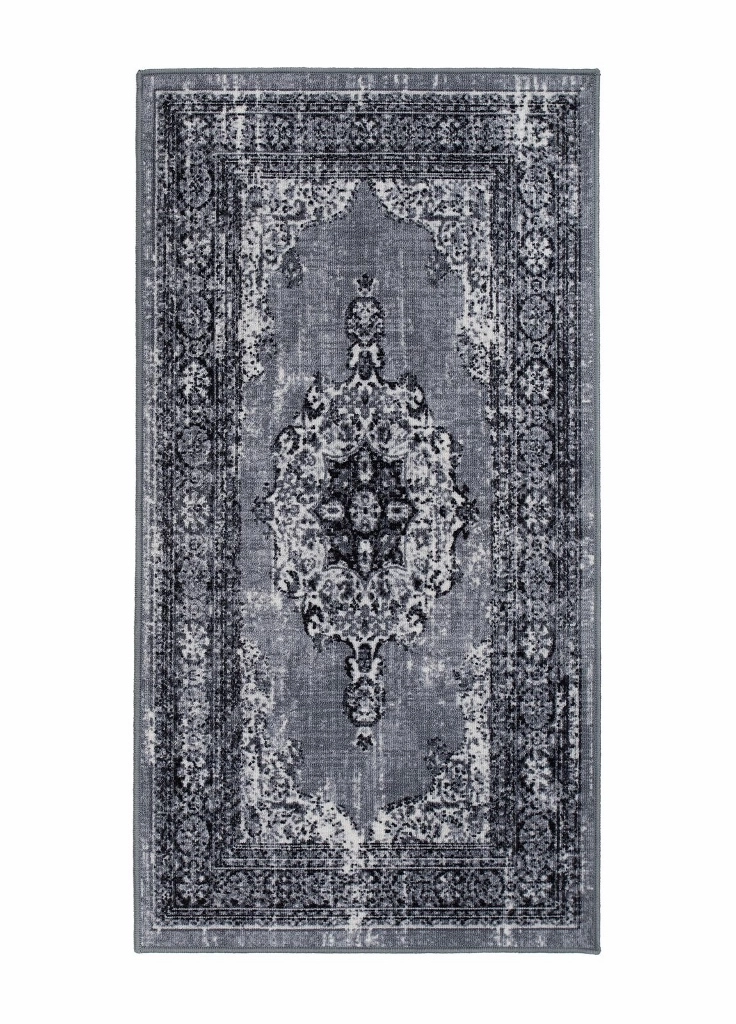 Vintage är en färgstark matta som har mönster med orientalisk inspiration. Mattan har en grå langettering och baksidan är gummerad, vilket gör att mattan ligger stadigt på plats.