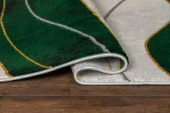Wave har en vit/grå melerad bottenfärg med langettsöm som löper längs långsidorna. Mattan är gjord i high/low teknik, vilket innebär att den har utskärningar för att färger och detaljer skall bli mer framträdande och ge större effekt. Vågorna i mattan går i smaragdgrön och guld. De gröna partierna är som skuggade av svart vilket ger en marmoreffekt och skapar ett läckert djup i mattan.